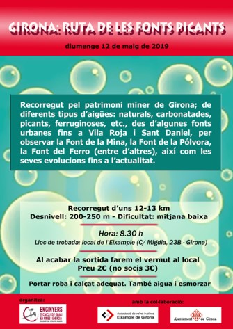 La Delegació de Girona del COETGME, conjuntament amb l'associació de veïns i veínes de l'Eixample de Girona, organitza pel diumenge 12 de maig una passejada pel patrimoni miner de la zona de Girona.